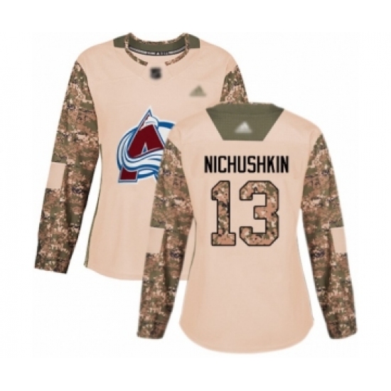 Women's Colorado Avalanche #13 Valeri Nichushkin Authentic Camo Veterans Day Practice Hockey Jersey