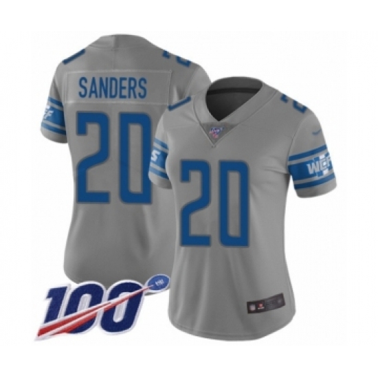 >Women's Detroit Lions #20 Barry Sanders Limited Gray Inverted Legend 100th Season Football Jersey