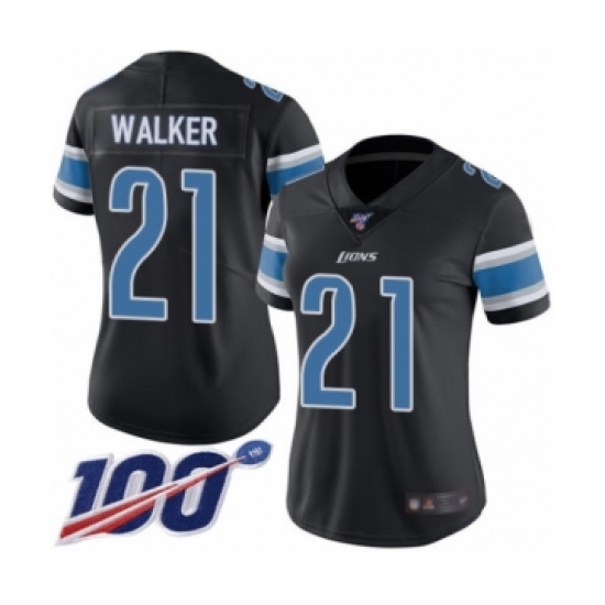 >Women's Detroit Lions #21 Tracy Walker Limited Black Rush Vapor Untouchable 100th Season Football Jersey