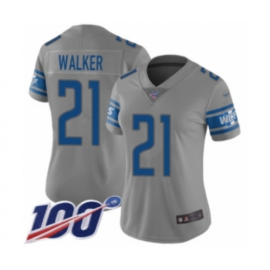 Women's Detroit Lions #21 Tracy Walker Limited Gray Inverted Legend 100th Season Football Jersey