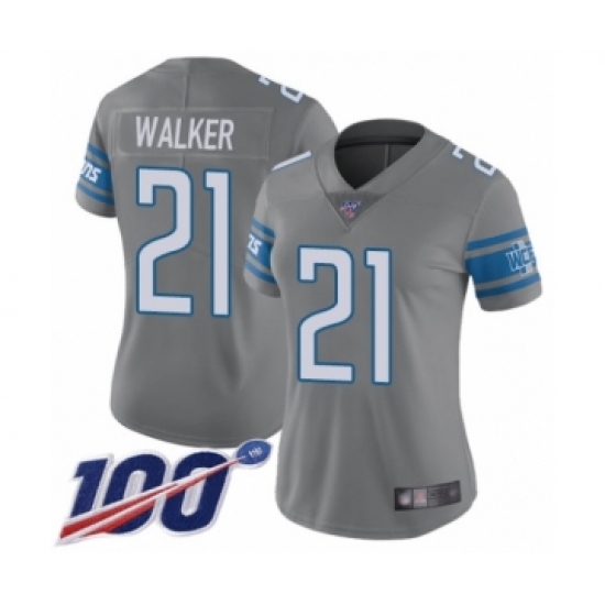 >Women's Detroit Lions #21 Tracy Walker Limited Steel Rush Vapor Untouchable 100th Season Football Jersey