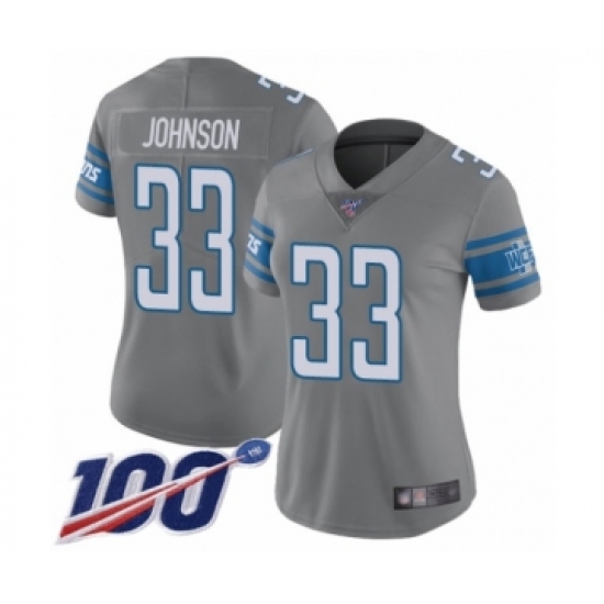 >Women's Detroit Lions #33 Kerryon Johnson Limited Steel Rush Vapor Untouchable 100th Season Football Jersey