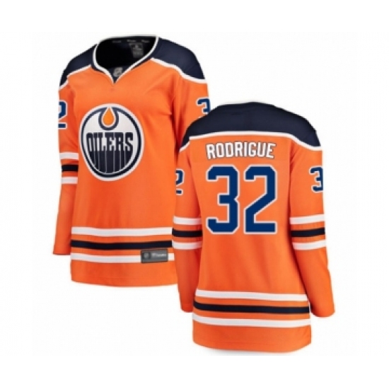 >Women's Edmonton Oilers #32 Olivier Rodrigue Authentic Orange Home Fanatics Branded Breakaway Hockey Jersey