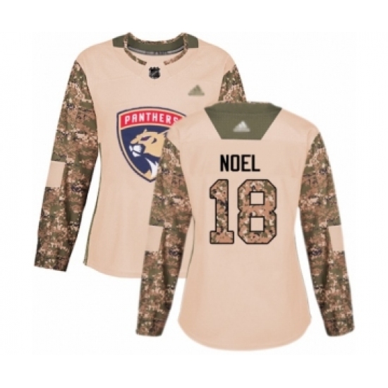 >Women's Florida Panthers #18 Serron Noel Authentic Camo Veterans Day Practice Hockey Jersey