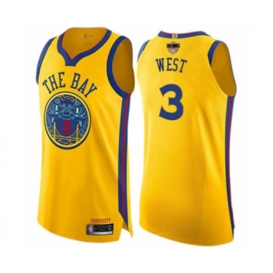 Men's Golden State Warriors #3 David West Swingman Gold 2019 Basketball Finals Bound Basketball Jersey - City Edition