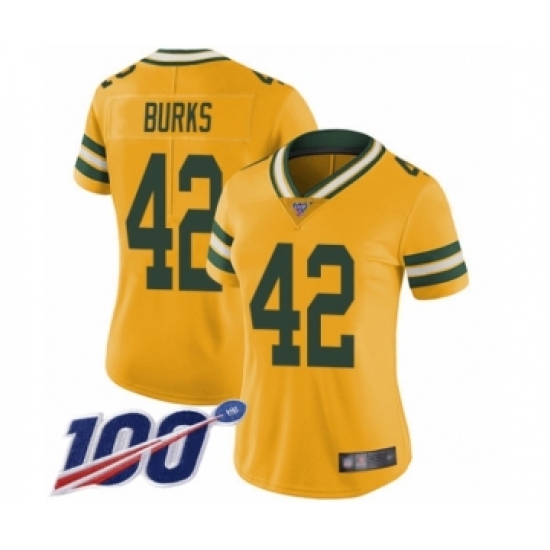 >Women's Green Bay Packers #42 Oren Burks Limited Gold Rush Vapor Untouchable 100th Season Football Jersey