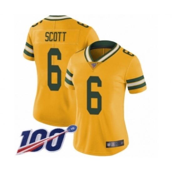 >Women's Green Bay Packers #6 JK Scott Limited Gold Rush Vapor Untouchable 100th Season Football Jersey