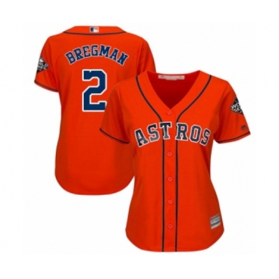 >Women's Houston Astros #2 Alex Bregman Authentic Orange Alternate Cool Base 2019 World Series Bound Baseball Jersey