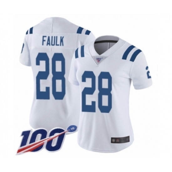 Women's Indianapolis Colts #28 Marshall Faulk White Vapor Untouchable Limited Player 100th Season Football Jersey