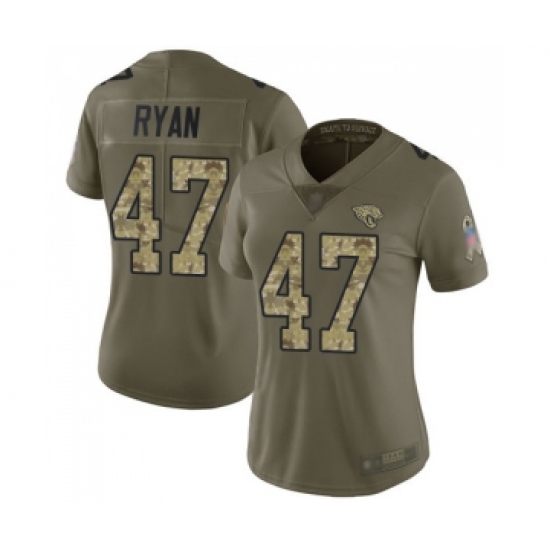 >Women's Jacksonville Jaguars #47 Jake Ryan Limited Olive Camo 2017 Salute to Service Football Jersey