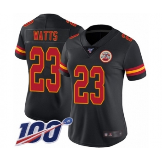 Women's Kansas City Chiefs #23 Armani Watts Limited Black Rush Vapor Untouchable 100th Season Football Jersey