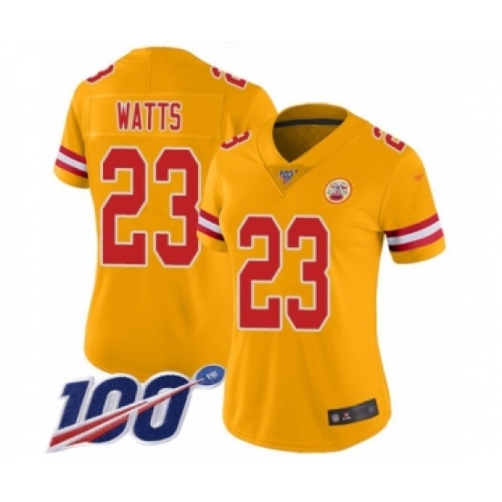 Women's Kansas City Chiefs #23 Armani Watts Limited Gold Inverted Legend 100th Season Football Jersey