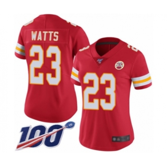 Women's Kansas City Chiefs #23 Armani Watts Red Team Color Vapor Untouchable Limited Player 100th Season Football Jersey