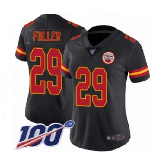 >Women's Kansas City Chiefs #29 Kendall Fuller Limited Black Rush Vapor Untouchable 100th Season Football Jersey