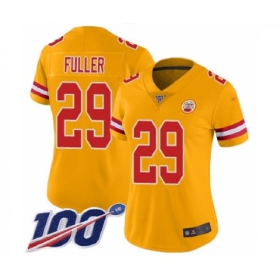 >Women's Kansas City Chiefs #29 Kendall Fuller Limited Gold Inverted Legend 100th Season Football Jersey