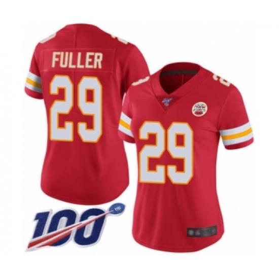 Women's Kansas City Chiefs #29 Kendall Fuller Red Team Color Vapor Untouchable Limited Player 100th Season Football Jersey