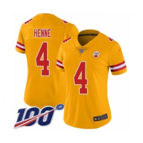 Women's Kansas City Chiefs #4 Chad Henne Limited Gold Inverted Legend 100th Season Football Jersey