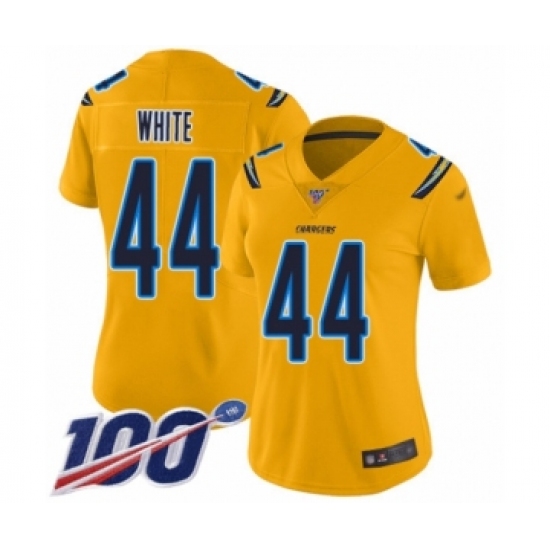 >Women's Los Angeles Chargers #44 Kyzir White Limited Gold Inverted Legend 100th Season Football Jersey