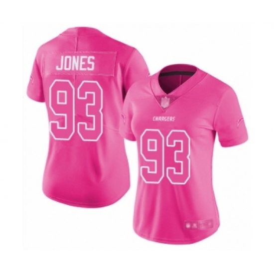 Women's Los Angeles Chargers #93 Justin Jones Limited Pink Rush Fashion Football Jersey