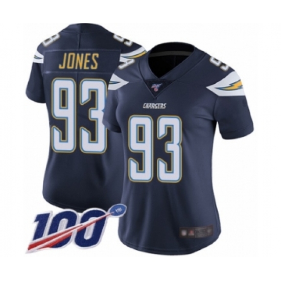 Women's Los Angeles Chargers #93 Justin Jones Navy Blue Team Color Vapor Untouchable Limited Player 100th Season Football Jersey