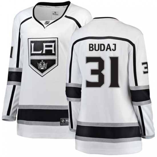 Women's Los Angeles Kings #31 Peter Budaj Authentic White Away Fanatics Branded Breakaway NHL Jersey