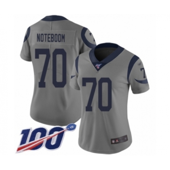 >Women's Los Angeles Rams #70 Joseph Noteboom Limited Gray Inverted Legend 100th Season Football Jersey
