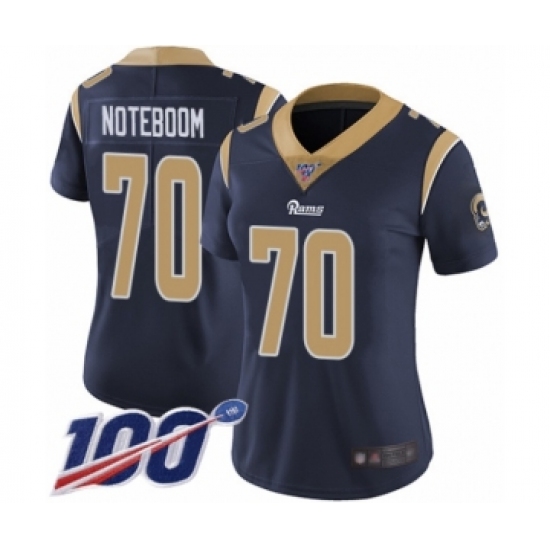 >Women's Los Angeles Rams #70 Joseph Noteboom Navy Blue Team Color Vapor Untouchable Limited Player 100th Season Football Jersey