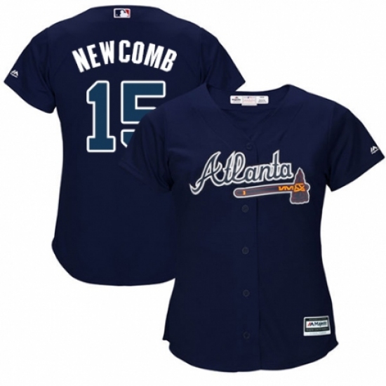 >Women's Majestic Atlanta Braves #15 Sean Newcomb Replica Blue Alternate Road Cool Base MLB Jersey