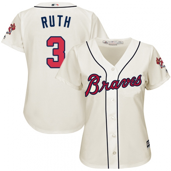 Home>MLB>Atlanta Braves>Babe Ruth>Women's Majestic Atlanta Braves #3 Babe Ruth Authentic Cream Alternate 2 Cool Base MLB Jersey