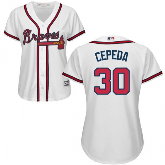 Home>MLB>Atlanta Braves>Orlando Cepeda>Women's Majestic Atlanta Braves #30 Orlando Cepeda Authentic White Home Cool Base MLB Jersey