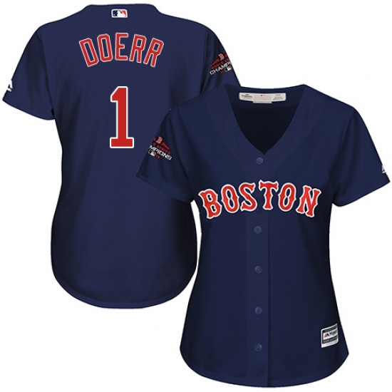 Women's Majestic Boston Red Sox #1 Bobby Doerr Authentic Navy Blue Alternate Road 2018 World Series Champions MLB Jersey