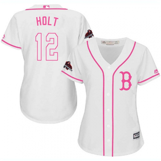 >Women's Majestic Boston Red Sox #12 Brock Holt Authentic White Fashion 2018 World Series Champions MLB Jersey