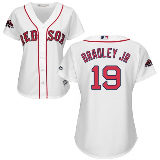 >Women's Majestic Boston Red Sox #19 Jackie Bradley Jr Authentic White Home 2018 World Series Champions MLB Jersey
