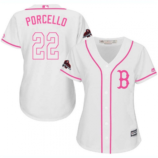 Women's Majestic Boston Red Sox #22 Rick Porcello Authentic White Home 2018 World Series Champions MLB Jersey