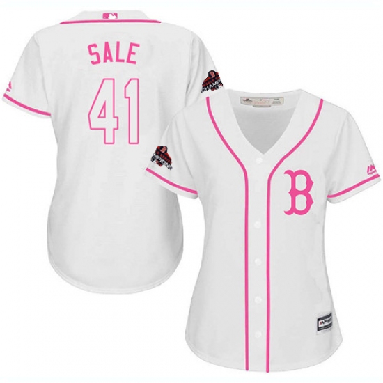 >Women's Majestic Boston Red Sox #41 Chris Sale Authentic White Fashion 2018 World Series Champions MLB Jersey