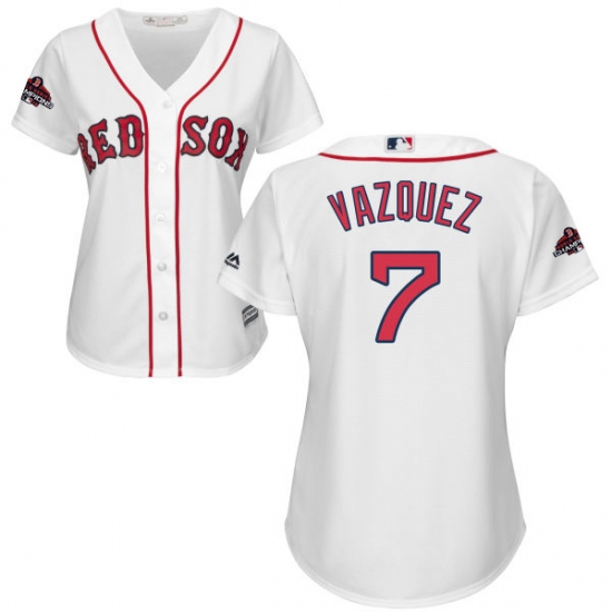 Women's Majestic Boston Red Sox #7 Christian Vazquez Authentic White Home 2018 World Series Champions MLB Jersey