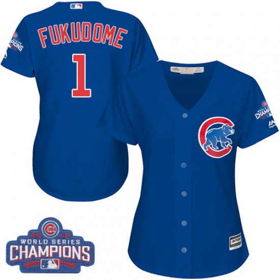 Home>MLB>Chicago Cubs>Kosuke Fukudome>Women's Majestic Chicago Cubs #1 Kosuke Fukudome Authentic Royal Blue Alternate 2016 World Series Champions Cool Base MLB Jersey