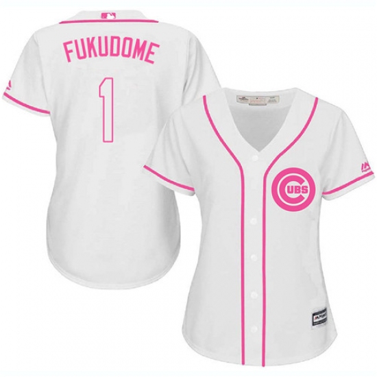 Home>MLB>Chicago Cubs>Kosuke Fukudome>Women's Majestic Chicago Cubs #1 Kosuke Fukudome Replica White Fashion MLB Jersey