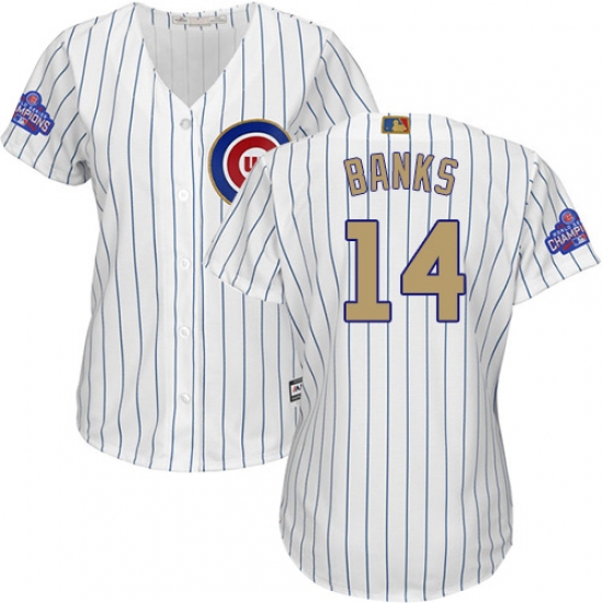 Women's Majestic Chicago Cubs #14 Ernie Banks Authentic White 2017 Gold Program MLB Jersey