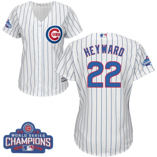 Women's Majestic Chicago Cubs #22 Jason Heyward Authentic White Home 2016 World Series Champions Cool Base MLB Jersey