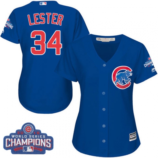 Women's Majestic Chicago Cubs #34 Jon Lester Authentic Royal Blue Alternate 2016 World Series Champions Cool Base MLB Jersey