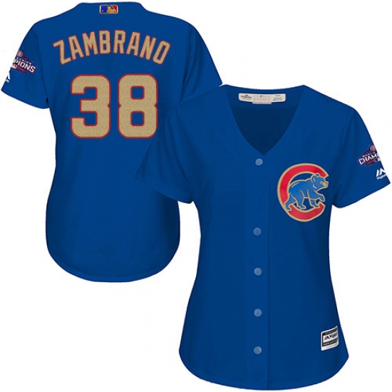 Home>MLB>Chicago Cubs>Carlos Zambrano>Women's Majestic Chicago Cubs #38 Carlos Zambrano Authentic Royal Blue 2017 Gold Champion MLB Jersey