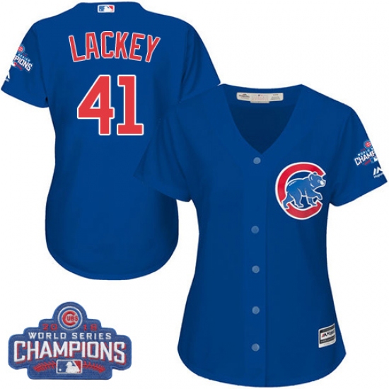 Home>MLB>Chicago Cubs>John Lackey>Women's Majestic Chicago Cubs #41 John Lackey Authentic Royal Blue Alternate 2016 World Series Champions Cool Base MLB Jersey