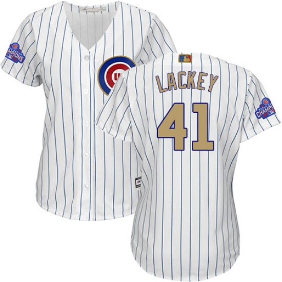 Home>MLB>Chicago Cubs>John Lackey>Women's Majestic Chicago Cubs #41 John Lackey Authentic White 2017 Gold Program MLB Jersey