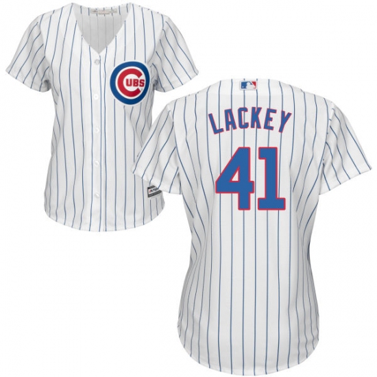 Home>MLB>Chicago Cubs>John Lackey>Women's Majestic Chicago Cubs #41 John Lackey Authentic White Home Cool Base MLB Jersey