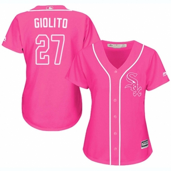 Women's Majestic Chicago White Sox #27 Lucas Giolito Replica Pink Fashion Cool Base MLB Jersey