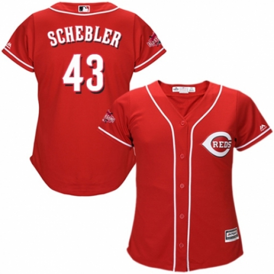 >Women's Majestic Cincinnati Reds #43 Scott Schebler Replica Red Alternate Cool Base MLB Jersey