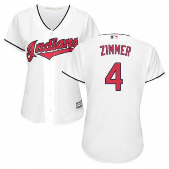 Women's Majestic Cleveland Indians #4 Bradley Zimmer Replica White Home Cool Base MLB Jersey