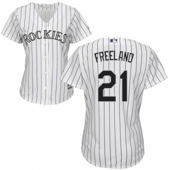 Women's Majestic Colorado Rockies #21 Kyle Freeland Replica White Home Cool Base MLB Jersey