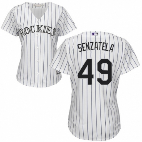 >Women's Majestic Colorado Rockies #49 Antonio Senzatela Authentic White Home Cool Base MLB Jersey